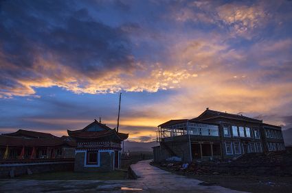 悄然而至的晨曦,隱藏著太古未盡消遁的光芒。揚(yáng)天的旌旗纏成不倒的箭桿,曾經(jīng)的故事還沒走出夢(mèng)中。草原的安謐,輕輕地?fù)嵛恐届o的牛群。奶香已浸漫晨的清新中,擠奶的姑娘臉頰已鍍上了紅霞的光暈。天地間的沉靜,只等待著第一聲牛哞的響起……草原的清晨,朝陽光臨的一刻,酥油和奶汁的淳香會(huì)醉倒那一片草色碧透的天地。