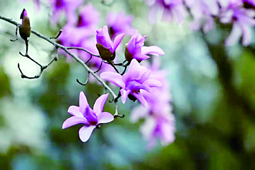 春日木蘭花開,清麗高潔,它沒有綠葉的襯托,只有淡淡的芳香和艷麗的顏色。