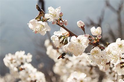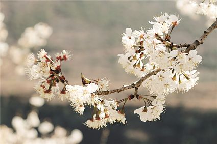 說起三月瀘定的美,可不止油菜花。在冷磧鎮(zhèn),純白如雪的櫻花也競(jìng)相開放。它們花團(tuán)錦簇,映著藍(lán)天,頗為壯觀。櫻桃花林中,簇簇花兒綴滿枝頭,潔白若仙。微風(fēng)吹過,滿樹搖曳,像極了千萬(wàn)個(gè)精靈在春色中舞蹈。