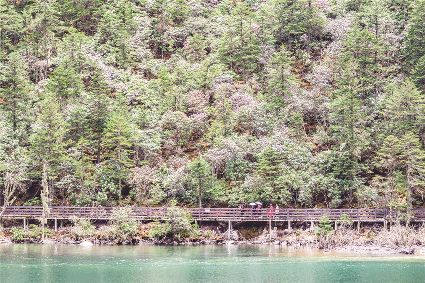 到過(guò)木格措的人,望著美麗的景色,不由得想起朱自清的《春》,“春天像小姑娘,花枝招展,笑著走著”,“春天像剛落地的娃娃,從頭到腳都是新的,它生長(zhǎng)著”。木格措就是這個(gè)“春天”,總是露出嶄新俏麗的容顏,到處都是新的,不是仙境,勝似仙境,與世界隔緣。