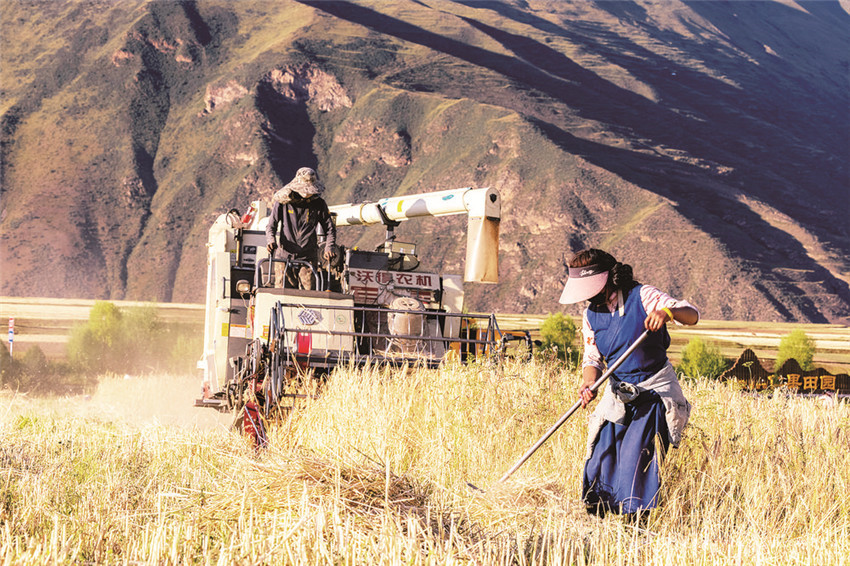 一望無邊的農(nóng)田里,谷粒飽滿,一陣風(fēng)吹來,金黃色的青稞隨風(fēng)起舞。收割機(jī)正來回穿梭,不一會兒就裝了滿滿一車……入秋后,甘孜縣迎來秋收時節(jié),到處呈現(xiàn)出一派豐收的景象。