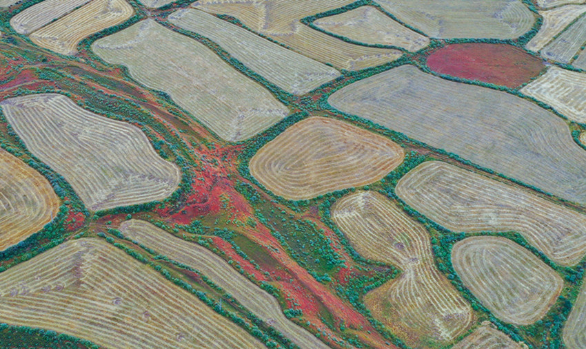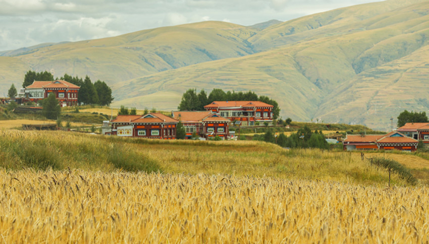 從立秋開始,陽氣漸收,萬物內(nèi)斂。在希望的田野上,主色調(diào)也從象征繁茂、成長的翠綠向代表成熟收獲的金黃漸變。爐霍縣蝦拉沱鎮(zhèn),藏房零星地點(diǎn)綴在田野間,成熟的農(nóng)作物漸染了整個秋季,讓這個小村莊如同一幅色彩斑斕的油畫。