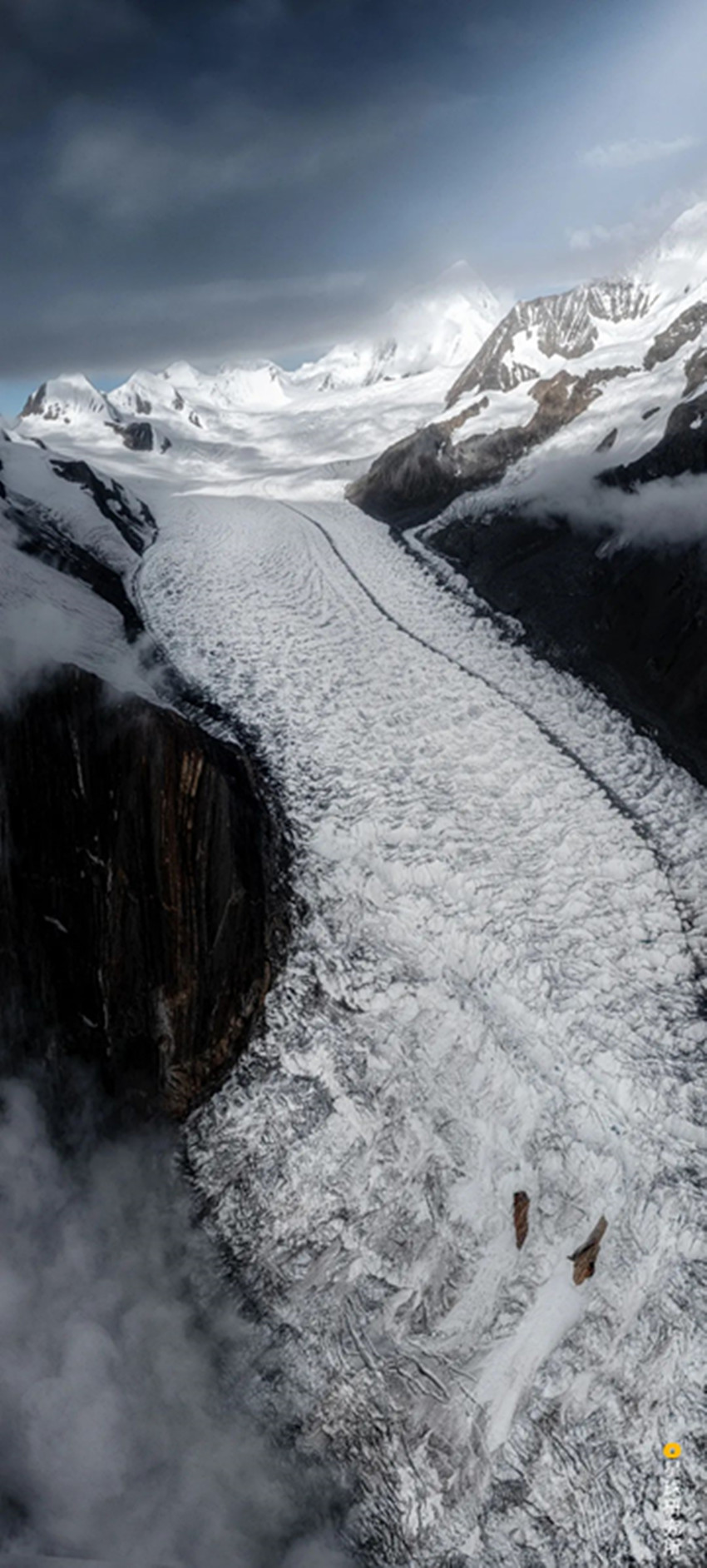 無論是在金色的草原、在蔚藍(lán)的湖畔,還是登上一座山,望向另一座山,整個(gè)甘孜有大約50座6000米以上的山峰,超過5000米的山峰更是高達(dá)600多座,是一個(gè)天然的雪山觀景臺。能誕生如此多的雪山,因?yàn)楦首伪揪驼驹诰奕说募绨蛑?,它屬于平均海拔超過4000米的青藏高原,且位于青藏高原東部最為險(xiǎn)峻的高山峽谷區(qū),兩條南北走向的山脈,大雪山和沙魯里山構(gòu)成甘孜的基本骨架,大雪山聳立在甘孜的東部,它從深切的大渡河與雅礱江河谷之間拔地而起格外險(xiǎn)峻,大雪山南部海拔7508.9米的貢嘎山一騎絕塵,成為整個(gè)橫斷山脈的制高點(diǎn),也是整個(gè)四川的制高點(diǎn),群峰聳峙的它是天生的主角。在它周圍,一條條冰川如綢帶、如彎刀、如洪流從山坡之上蜿蜒而下。