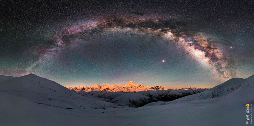 大雪山北部,海拔5884米的雅拉雪山與貢嘎遙相呼應(yīng),日落時(shí)分聳立在原野之上的雅拉被霞光籠罩如同大地的王冠;沙魯里山縱貫甘孜西部,它南北長約450公里,寬約200公里是四川最寬最長的山脈,它山勢平緩,置身其中有時(shí)都感覺不到山的存在,但同時(shí),它高大巍峨,盛產(chǎn)超過6000米的獨(dú)立山峰,沙魯里山脈北段有海拔6168米的雀兒山,它的中段有海拔6174米的格聶山,它的南段有三座6000米級山峰組成的稻城三座雪山,彼此距離不過5-7千米,三山合圍之中給人強(qiáng)烈的視覺震撼和心靈沖擊。動(dòng)輒直抵云霄的海拔,加上相對原始的環(huán)境,使得這里空氣潔凈度極高、光污染小,夜幕落下、銀河升起,云端之色變成一片攝人心魄的星光。