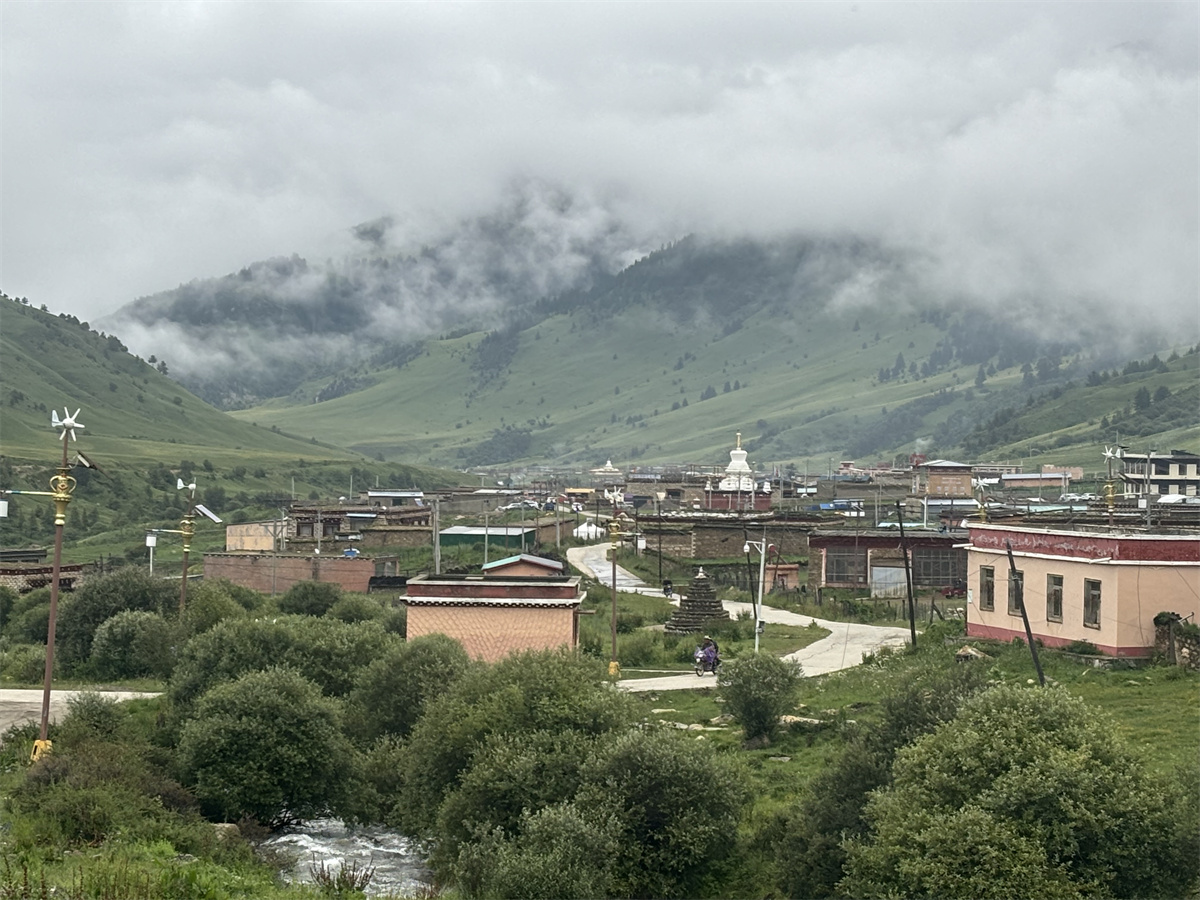 然日卡村是格聶山下一個典型的藏族村莊,因自然景觀優(yōu)美而聞名。站在村前觀景平臺上,能看到以雄奇險峻而著稱的格聶神山。格聶神山位于理塘縣西南部,是四川省甘孜藏族自治州理塘縣境內的著名山脈,?它不僅是四川第三高峰,?而且因其獨特的自然景觀和深厚的文化背景,?吸引了眾多旅行者和朝圣者。?格聶神山的地質構造和自然景觀極為豐富,?包括冰川、?雪峰、?草原、?沼澤、?瀑布等,?展現了大自然的鬼斧神工和生命的多樣性。?