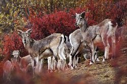 巖羊(學(xué)名:Pseudois nayaur),體型中等,形態(tài)介于野山羊與野綿羊之間。兩性具角,雄羊角粗大似牛角,但僅微向下后上方彎曲。以青草和各種灌叢枝葉為食。冬季啃食枯草。它們還常到固定的地點(diǎn)飲水,但到寒冷季節(jié)也可舔食冰雪。無(wú)固定獸徑和棲息場(chǎng)所。它們?cè)趹已虑捅谥灰幸荒_之棱,便能攀登上去。一跳可達(dá)2、3米,若從高處向下更能縱身一躍10多米而不致摔傷。冬季發(fā)情交配,次年6、7月產(chǎn)仔,每年通常只產(chǎn)1仔。主要天敵是雪豹、豺、狼,以及禿鷲和金雕等大型猛禽。中國(guó)國(guó)家二級(jí)重點(diǎn)保護(hù)野生動(dòng)物?! ?br />