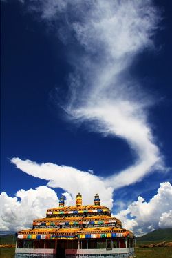 云在天上飄動,影子在大地上掠過,碧綠的草地在云流的映襯下五彩斑斕,猶如一塊巨大的迷彩布,把草地打扮得分外妖嬈。云不墨守成規(guī),每時每刻都有新創(chuàng)意;云有層次的美,有型有款。時刻花樣百出、千奇萬巧的云景,常使人遐想聯(lián)翩。我愛高原的云,因為亦真亦幻的云仿佛成了心靈遠(yuǎn)游的載體,寄托著人們的留戀與追求。