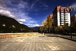 康定新城位于康定舊城南,地處折多河、榆林河交匯處,緊鄰國道318線,距舊城中心約8公里,康定至海螺溝旅游黃金線榆磨公路穿城而過。康定新城核心區(qū)規(guī)劃總占地面積2.5平方公里,容納城市人口2.5萬人。