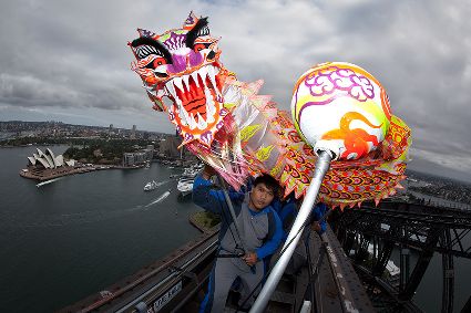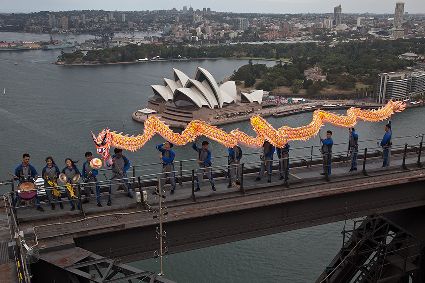 當日,由當?shù)厝A人團體精心準備的中國傳統(tǒng)舞龍亮相悉尼海港大橋,拉開中國新年慶祝活動的序幕。