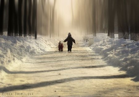 兩個(gè)毫不知情的小男孩兒無(wú)疑為這種電影畫(huà)面般精美的風(fēng)景上添上了最美的一筆。無(wú)論是在一條泥濘的小路,還是陰冷的森林,或是在室內(nèi)。Elena捕捉到了那束最完美的光線,正巧照射在小男孩兒的身上,如陰雨天突 然出現(xiàn)的太陽(yáng),一切都變得不再陰郁而充滿陽(yáng)光。Elena說(shuō),“我比較喜歡自然光,無(wú)論是在室內(nèi)還是室外,我喜歡各種各樣的光線環(huán)境,街燈,蠟燭,煙霧, 雨天,雪天,任何一種都能給予畫(huà)面更深度的視覺(jué)沖擊與意義。