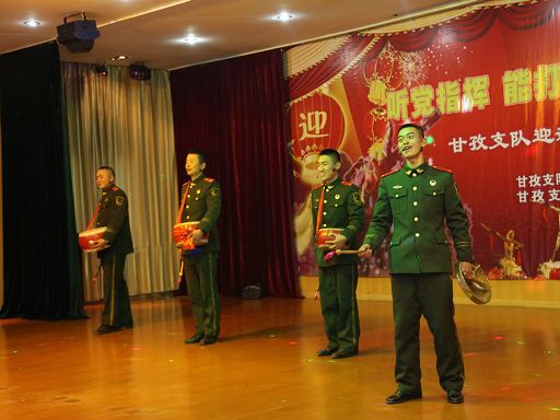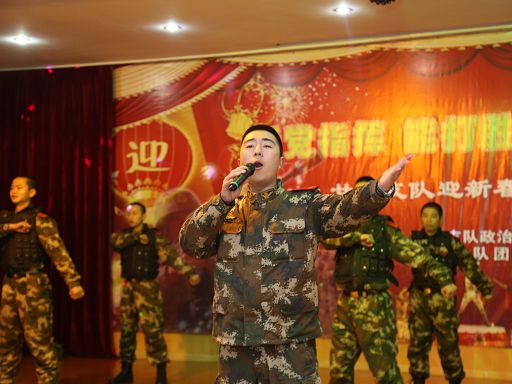 整臺匯演以“我們行進(jìn)在強(qiáng)軍路上”為主題,共分“喜迎新年,官兵情懷,祝福祖國”三個篇章,晚會融歌舞、小品、相聲、雙簧等表演于一體,結(jié)構(gòu)緊湊、熱情奔放、氣勢恢弘,營造出了昂揚(yáng)振奮、拼搏進(jìn)取的濃厚氛圍,充分展示了支隊官兵朝氣蓬勃的青春氣息和扎根高原、建功警營的豪情壯志。晚會在器樂合奏《鑼鼓喧天迎新春》拉開帷幕,融入歡慶腰鼓的喜慶元素,和著歡快的節(jié)奏,盡顯支隊特色文化隊的藝術(shù)魅力。歌舞表演《當(dāng)兵就是那么帥》刻畫了支隊官兵時刻準(zhǔn)備著上一線、打頭陣的戰(zhàn)斗激情;雙簧《快樂的武警官兵》展示了官兵熱愛警營生活、活潑可愛的一面;歌舞《迷彩假面舞》演繹了支隊官兵扎根高原,忠誠使命做奉獻(xiàn)的壯志豪情;《三句半》詮釋了支隊官兵牢記強(qiáng)軍目標(biāo),投身強(qiáng)軍實踐,勇挑重?fù)?dān),沖鋒在前,報國為民的高尚情懷;詼諧夸張的手法以小品《歌倆好》、啞劇《新兵訓(xùn)練》“兵演兵、兵寫兵”,表達(dá)官兵團(tuán)結(jié)一心,刻苦訓(xùn)練的精神風(fēng)貌,博得了現(xiàn)場觀眾的陣陣掌聲,將晚會推向了一個又一個高潮。演出中,各基層中隊維穩(wěn)駐訓(xùn)分隊以團(tuán)拜形式向全支隊官兵送上了新春的祝福。晚會在舞蹈表演《軍之魂》中落下帷幕。