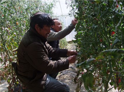 本網(wǎng)訊(馬建華 文/圖)陽春三月,爐霍大地仍然一派蕭條景象。然而在爐霍縣斯木鄉(xiāng)吉絨村的蔬菜大棚里,卻綠意盎然。紅彤彤的樹番茄、碩大的茄子、長勢喜人的青椒、紅艷艷的花卉,大棚里溫暖的春色吸引了縣城市民和游客前來觀光,購買新鮮的蔬菜。比縣城菜市場價格便宜一半的蔬菜,讓市民爭相前來購買。吉絨村村民將土地流轉(zhuǎn)給蔬菜種植公司,收取土地流轉(zhuǎn)費(fèi),在蔬菜大棚里打工,每天還有100元錢的收入,而且學(xué)到了先進(jìn)的蔬菜種植技術(shù),為今后發(fā)展蔬菜大棚、種植反季節(jié)蔬菜、增加經(jīng)濟(jì)收入打下了堅(jiān)實(shí)基礎(chǔ)。爐霍縣在發(fā)展高原特色現(xiàn)代觀光農(nóng)業(yè)方面邁出了可喜步伐。