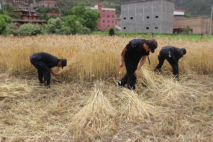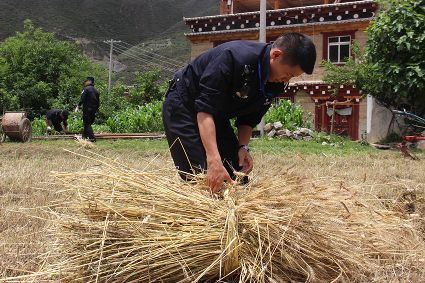 “不能讓鄧珠家成熟了的小麥爛在地里。”近期,巴塘縣陰雨天氣給當(dāng)?shù)卮迕袷崭钚←湈?lái)不便。該縣夏邛派出所民警自發(fā)來(lái)到夏邛鎮(zhèn)河西村特困戶鄧珠家田地,以最快的速度幫助收割、捆綁、脫粒等一系列搶收工作。據(jù)悉,夏邛派出所民警在開展“一標(biāo)三實(shí)”工作時(shí),將當(dāng)?shù)乩щy戶、殘疾戶、五保戶等缺少勞動(dòng)力的家庭銘記在心,每逢播種秋收都會(huì)進(jìn)行幫助。