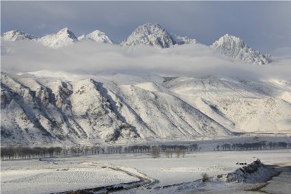 到達(dá)滿(mǎn)金寺,雪已經(jīng)離我們很遠(yuǎn)了,它停留在了溫拖地區(qū)的群山之上。陽(yáng)光很溫暖,金沙江水似乎也有了初春的體溫。上萬(wàn)畝青稞地還是高原上三月份應(yīng)有的土黃色,它透著一種簡(jiǎn)單和直白。我開(kāi)始胡亂聯(lián)想:這些簡(jiǎn)單的土黃色是否就是大雪融化之后的另一種色彩。望著對(duì)岸的滿(mǎn)金寺,混合著自己的想象,我寫(xiě)下一首不那么貼切的詩(shī),詩(shī)中再次出現(xiàn)了雪:
