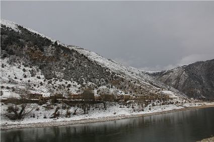 在接下來(lái)的路途中,停車(chē)休息的瞬間,一個(gè)臨水的村莊出現(xiàn)了。經(jīng)過(guò)昨夜的一場(chǎng)大雪,整個(gè)村子出人意料的“安靜”,河對(duì)岸牧民放馬的聲音,那個(gè)到河邊放下水桶汲水的女人取水的動(dòng)靜,似乎都被一場(chǎng)雪過(guò)濾了。我即使走到河邊,也難以通過(guò)耳朵和眼睛接近這一切。一幅無(wú)聲的畫(huà)面更貼近一場(chǎng)雪。我放下手中的相機(jī),似乎也在放下一些多余的東西,尊重著一種留白。