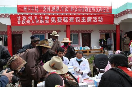 截至目前,全州累計(jì)B超人群篩查51.17萬(wàn)人,免費(fèi)藥物治療1.24萬(wàn)人,手術(shù)治療803人。全州登記家犬114509只,80%以上的寺廟落實(shí)了依法規(guī)范養(yǎng)犬規(guī)定。全州已建成12個(gè)集中屠宰場(chǎng)(點(diǎn)),實(shí)施犬驅(qū)蟲(chóng)10.5萬(wàn)只,羊免疫236.23萬(wàn)只次。全州累計(jì)開(kāi)工打井382口,集中供水18處,改造提升工程16處,6.7萬(wàn)農(nóng)牧民群眾受益。健康教育實(shí)現(xiàn)廣覆蓋、健康行為逐步養(yǎng)成,開(kāi)展千人小分隊(duì)送健康進(jìn)村、包蟲(chóng)病防治知識(shí)競(jìng)賽、送電影下鄉(xiāng)宣傳、發(fā)放健康教育干預(yù)包等形式多樣、內(nèi)容豐富的健康教育。 (周衛(wèi) 攝影報(bào)道)