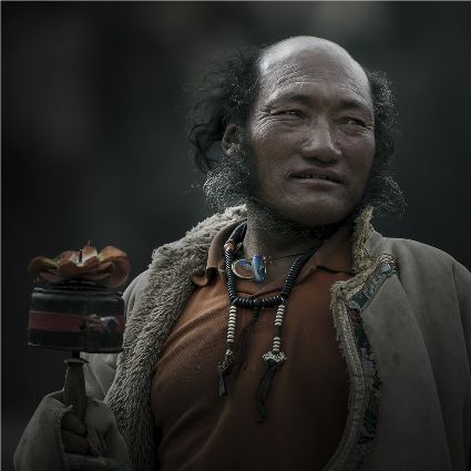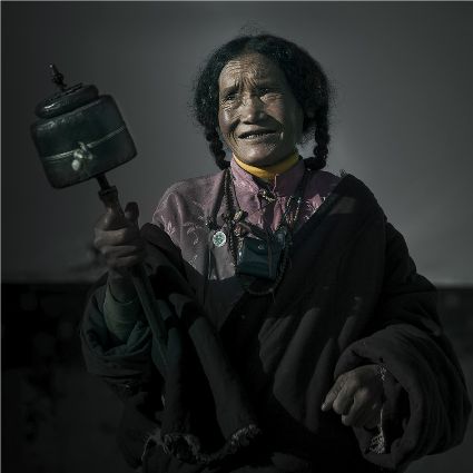 每當(dāng)我手持相機(jī)時,對他們始終懷有一種敬畏,我捕捉到他們眼神里流露出虔誠??粗?jīng)筒上“甲多”的飛轉(zhuǎn),我陶醉了,醉在那轉(zhuǎn)經(jīng)筒的旋轉(zhuǎn)舞動,醉在那轉(zhuǎn)經(jīng)筒傳誦的故事,醉在那一張張手持轉(zhuǎn)經(jīng)筒的面孔,還有,還有因祈禱音符助推而從未停止的轉(zhuǎn)經(jīng)筒……