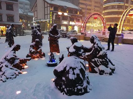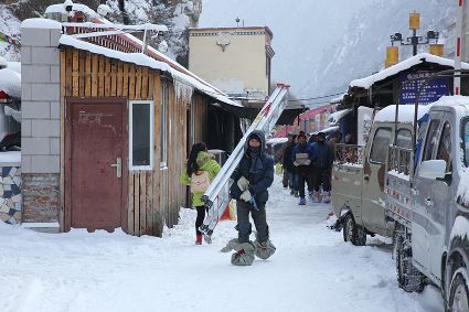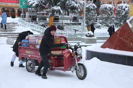 “風(fēng)雨送春歸,飛雪迎春到。已是懸崖百丈冰,猶有花枝俏。”2月4日傍晚,大片大片的雪花,從昏暗的天空中紛紛揚(yáng)揚(yáng)飄落下來(lái)。霎時(shí)間,山川、河流、城市,全都籠罩在白蒙蒙的大雪之中。黃昏的雪,下得深切切的,好象有千絲萬(wàn)縷的情緒似的,又像海水一般洶涌,能夠淹沒(méi)一切,還有一絲揭開藏頭露尾般的裸露感。雪花形態(tài)萬(wàn)千、晶瑩透亮,好象出征的戰(zhàn)士,披著銀色的盔甲,又像是一片片白色的戰(zhàn)帆在遠(yuǎn)航…… 落光了葉子的柳樹上,掛滿了毛茸茸、亮晶晶的銀條兒;冬夏常青的松樹和柏樹,堆滿了蓬松松、沉甸甸的雪球。那一片雪花在空中舞動(dòng)著各種姿勢(shì),或飛翔,或盤旋,或直直地快速墜落,鋪落在地上?!昂鋈缫灰勾猴L(fēng)來(lái),千樹萬(wàn)樹梨花開”——這是雪的燦爛;一場(chǎng)瑞雪,扮美了康定,年味籠罩的康定城,嫵媚妖嬈。無(wú)論是背水姑娘、有著年味兒的將軍橋,還是大紅燈籠高高掛的康定門,都在雪后別有一番景致。與美景合影、和朋友玩雪都是最佳選擇。在風(fēng)雪中,交警不畏嚴(yán)寒默默堅(jiān)守崗位 ,指揮交通疏堵保暢。他們的身影在皚皚風(fēng)雪路上站成一道道最美的風(fēng)景,溫暖了康定。從早上六點(diǎn)開始,康定的環(huán)衛(wèi)工就迎著刺骨的寒風(fēng),開始了除冰雪保通暢的行動(dòng),在積雪覆蓋的康定城,早起的商販樂(lè)呵呵地做起了買賣;民工迎著雪后的寒風(fēng)出門務(wù)工,他們是最可敬的人。