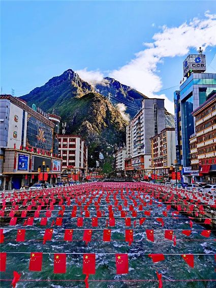 萬方樂奏慶華誕,雪域高原紅爛漫。處處國旗飄揚(yáng),到處都能感受到濃烈的喜迎國慶氛圍。此時,最美不過“中國紅”。
