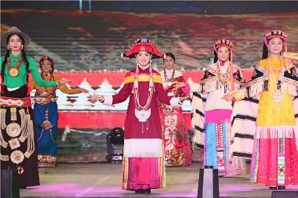 11月21日晚,康巴美人模特秀暨海螺溝冰川溫泉狂歡夜在神湯溫泉中心火熱上演,50名有著“東方美人”美譽(yù)的康巴姑娘和有著“格薩爾王”體魄的康巴漢子伴著原生態(tài)牧歌依次登臺(tái)亮相,率先開啟溫泉T臺(tái)服飾展演大幕。隨后,《Fashion Girl》、ViVi時(shí)尚舞團(tuán)、《甘孜踢踏舞》、魔方搖滾樂團(tuán)、《康定情歌》······中西合璧、形式多樣、精彩紛呈的節(jié)目陸續(xù)上演,“最炫民族風(fēng)”的演出燥熱夢幻舞臺(tái),“冰與火”的狂歡夜深受廣大現(xiàn)場觀眾的喜愛。圖為活動(dòng)現(xiàn)場。