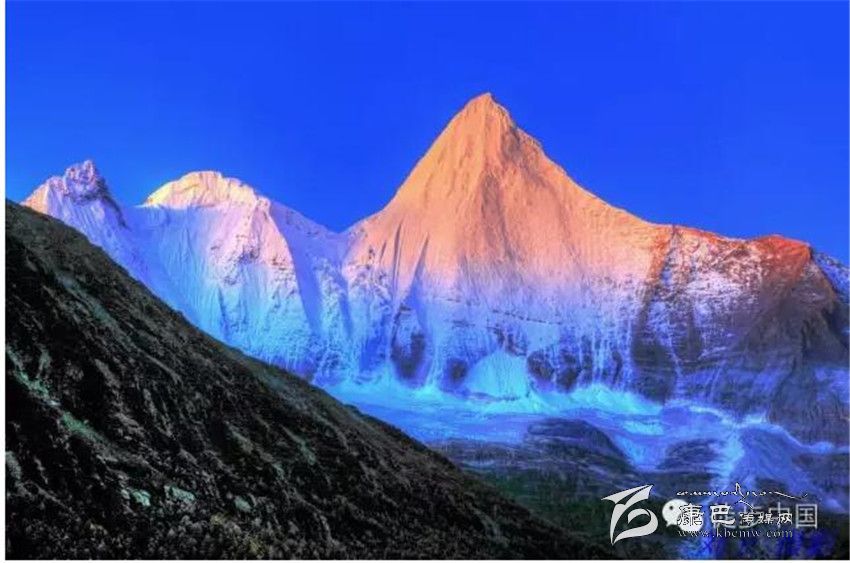 稻城三神山之央邁勇神山,央邁勇藏語意為“文殊菩薩”,海拔5958米。文殊菩薩在佛教中是有智慧的化身,雪峰像文殊菩薩利用手中的智慧之俞直指蒼穹。
