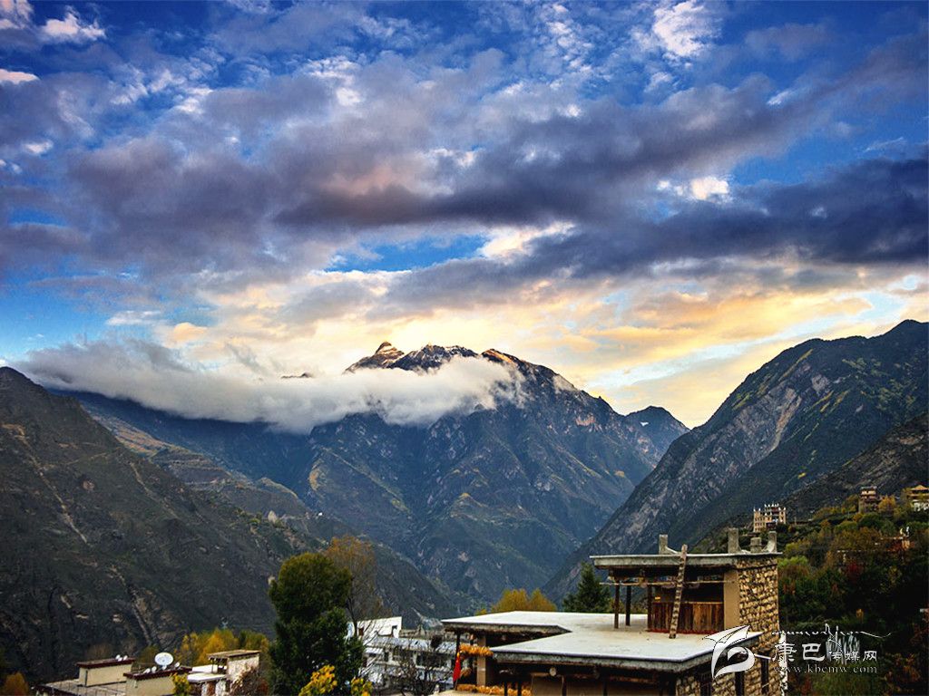 墨爾多山脈起于阿壩州鷓鴣山,如龍盤旋延綿上千里,主峰5000米,在大、小金川匯合處丹巴縣境內(nèi)突兀矗立,高聳入云。西仰猶如一尊巨佛乘騎一頭猛獅奔馳,從西南而望,好似一個藍(lán)色寶瓶橫空擺放南望則見四季煙云,峰巒魔變。呈佛經(jīng)所載的須彌山景。