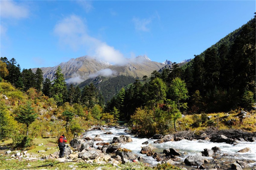 班車的話可以乘坐康定到九龍的車,快到九龍的地方可以看到有一個(gè)指示牌,標(biāo)明前往泉華灘(玉龍溪),在此路口下車,再租車前往貢嘎山鄉(xiāng)(六巴鄉(xiāng))只有十多公里。另外也可以乘車到新都租車前往貢嘎山鄉(xiāng),約80公里。