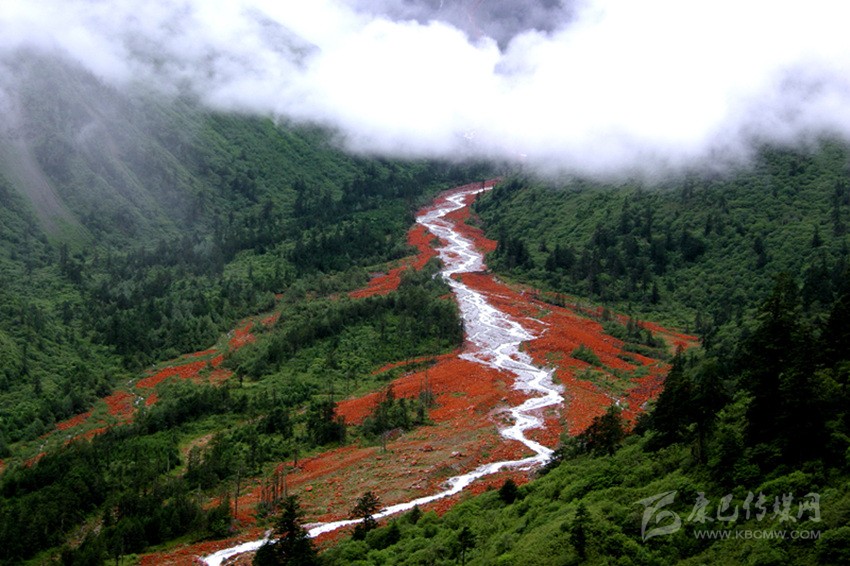 成千上百顆紅色石頭,堆積在河谷中、溪流里、山野旁,如果說(shuō)海螺溝是一首歌,那紅石就是音符,二者共同譜成了一曲絕美之歌。而那一抹紅色,與山間的溪流、谷中聳立的樹杉、青山綠水交相輝映,構(gòu)成了一幅大美于世的秀麗風(fēng)景畫卷。