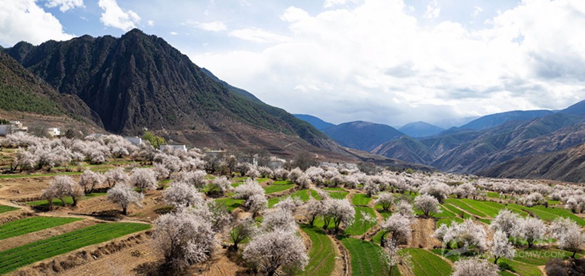近日,四川省得榮縣境內成片的野生桃花從河谷到山腰次第開放,漫山遍野的桃花與雪山、麥地、白藏房等構成高原上美麗的“世外桃園”畫卷。 近年來,當?shù)卣耙曰槊健?,加強在桃花較集中的村寨打造觀景平臺,引導當?shù)厝罕姲l(fā)展食宿,不斷完善旅游服務設施,增加村民收入,鞏固脫貧攻堅成果。