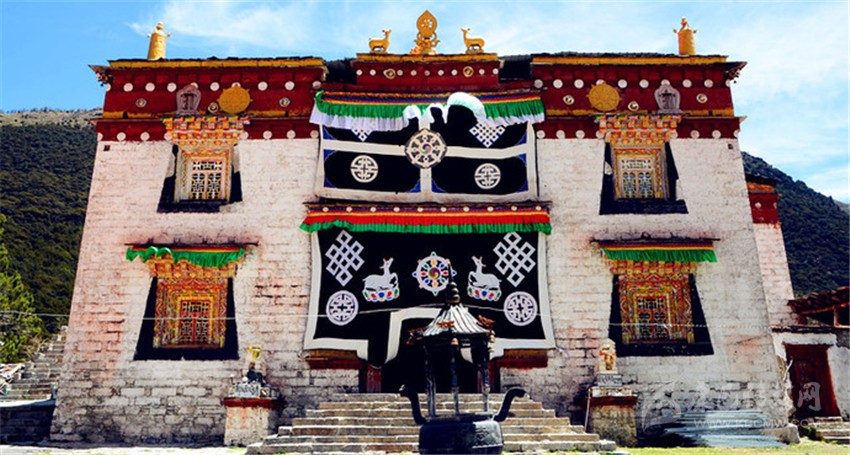 沖古寺既是觀賞三座神山的必經(jīng)之地,也是當?shù)夭刈迦罕娹D(zhuǎn)山儀式的出發(fā)地。沖古寺前的沖古草坪風景一流,并且在此可以以很好的角度觀賞到仙乃日和夏諾多吉。