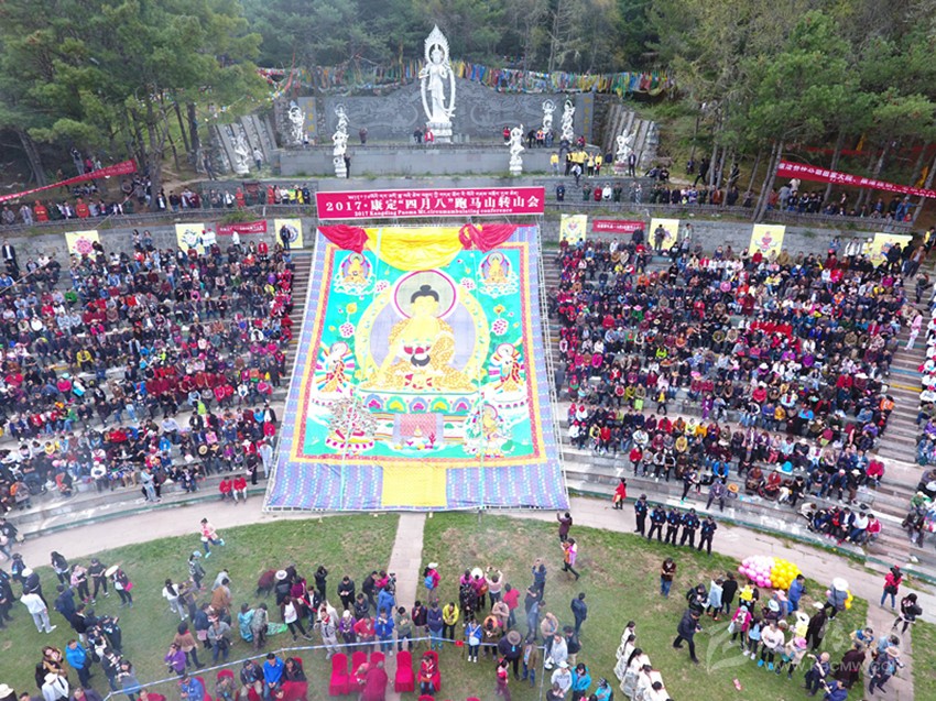 5月3日的康定祥云朵朵、春風(fēng)動(dòng)人,跑馬山上更是梵音陣陣、歌舞歡騰、人潮涌動(dòng)、站無(wú)虛席;一年一度的康定“四月八”跑馬山國(guó)際轉(zhuǎn)山會(huì)在此火爆上演,數(shù)萬(wàn)中外游客和藏區(qū)群眾歡聚在此,共享文化盛宴、共續(xù)民俗經(jīng)典,用歡歌踏舞祈??刀?。