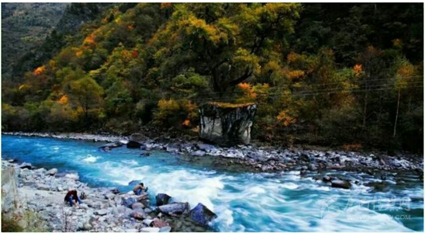 東谷河原名牦牛河,在丹巴縣五個(gè)主干水系中,它是最小的一條,兩岸多為峽谷地貌,僅在支溝匯合處出現(xiàn)有平壩草地。在陡峭高聳的河谷兩岸,針闊葉混交林呈現(xiàn)出深淺不同的綠色,既有青黛,墨綠,又有嫩綠,草青及四季輪番開(kāi)花的不同品種的大小杜鵑。還不時(shí)有珍禽出沒(méi)。每當(dāng)秋高氣爽的季節(jié),一團(tuán)團(tuán),一簇簇的紅葉伴隨杜鵑花在林間綻放,伴以宛轉(zhuǎn)的啾啾鳥(niǎo)嗚;河水清澈明亮,時(shí)而奔騰而下,形成飛瀑,時(shí)而伴著叮咚之聲潺潺而過(guò),這種美景何處能有?老革命家胡耀邦同志游覽后,對(duì)此青山綠水贊不絕口,并稱之為“天然盆景”!盆景藝術(shù)一向以“無(wú)聲的詩(shī)詞,立體的畫(huà)卷”來(lái)形容。牦牛谷景點(diǎn)正是一個(gè)有著巨大篇幅的詩(shī)詞,一個(gè)有著廣闊的立體畫(huà)卷。