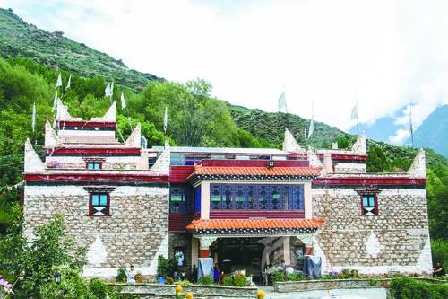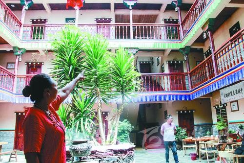 記者在“安卡兒民族莊園”看到,每天游客絡(luò)繹不絕,游客們不肯錯過的是這里的鄉(xiāng)愁。眼前的“安卡兒民族莊園”是一座藏式三層小樓,以嘉絨民居為主格調(diào)。從外觀看,這棟三層小樓與村里其他農(nóng)家小院沒有多少差異,但仔細(xì)端詳,其所有窗戶大小、高低不一,透出與眾不同的設(shè)計風(fēng)格。走進院內(nèi),這座藏式小樓的走廊外側(cè)裝著木欄桿,欄桿下面掛著藍(lán)綠相間的布條,以及大院中央郁郁蒼蒼的盆景,讓人美不勝收。