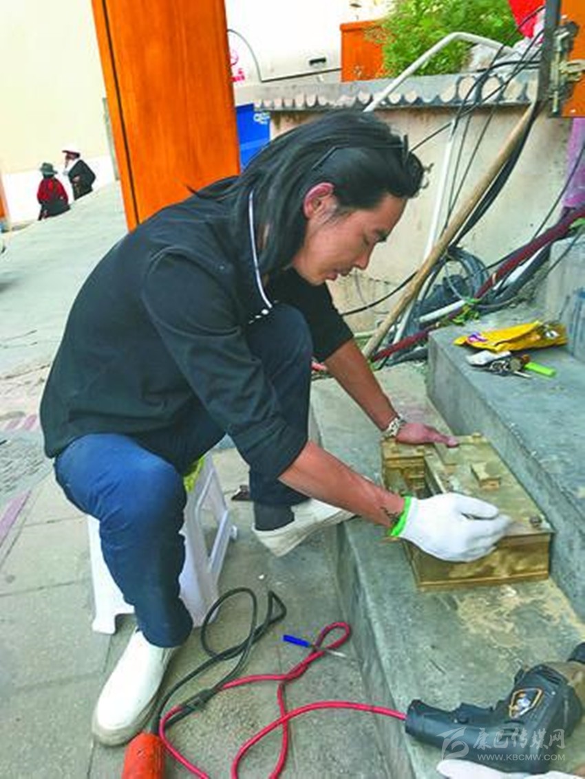 從2016年至今,寸潤炳打造出15座銅胚、鎏金、礦物顏料著色的德格印經(jīng)院模型,已經(jīng)售賣7座,剩下8座已經(jīng)有商家訂貨,將在下月取貨?!懊孔蹆r一萬八千元,已制作的全部賣出,又有4座的訂單。只要是好東西,肯定有人會買。”寸潤炳說。
