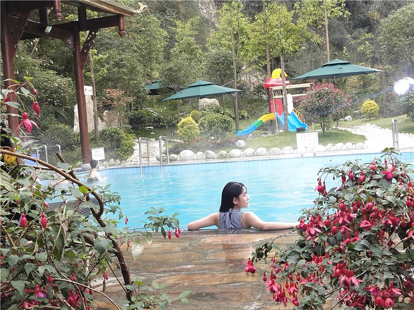 海螺溝冬日泡溫泉?jiǎng)e有情趣。