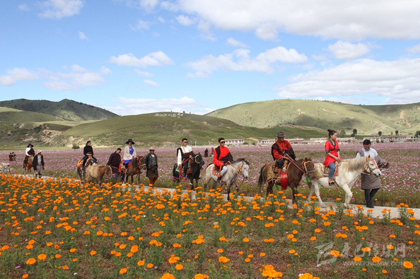 過去的漢戈村曾經(jīng)是貧困村,2016年,當(dāng)?shù)乩脟彝度氲闹攸c(diǎn)生態(tài)功能區(qū)轉(zhuǎn)移致富資金1100萬元,打造了花海景觀,解決村民就業(yè)1200余人次,鼓勵(lì)村民依托國道227線穿村而過的交通優(yōu)勢,借助花海發(fā)展帳篷民宿,騎馬、射箭等具有藏族特色的旅游產(chǎn)業(yè),每年吸引游客5萬余人,漢戈村人均增收2800多元。