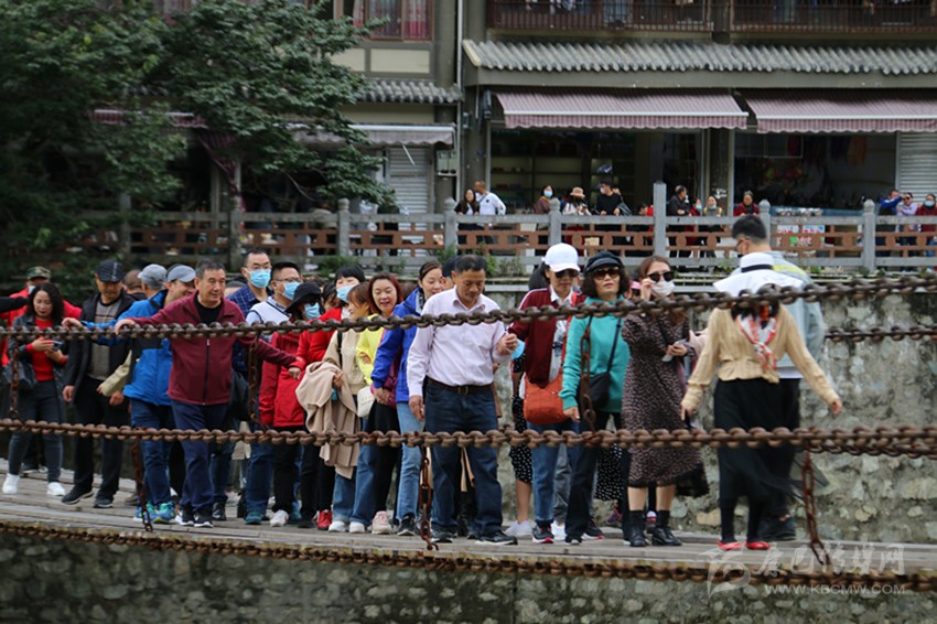 游客體驗(yàn)瀘定鐵索橋。本網(wǎng)資料庫圖