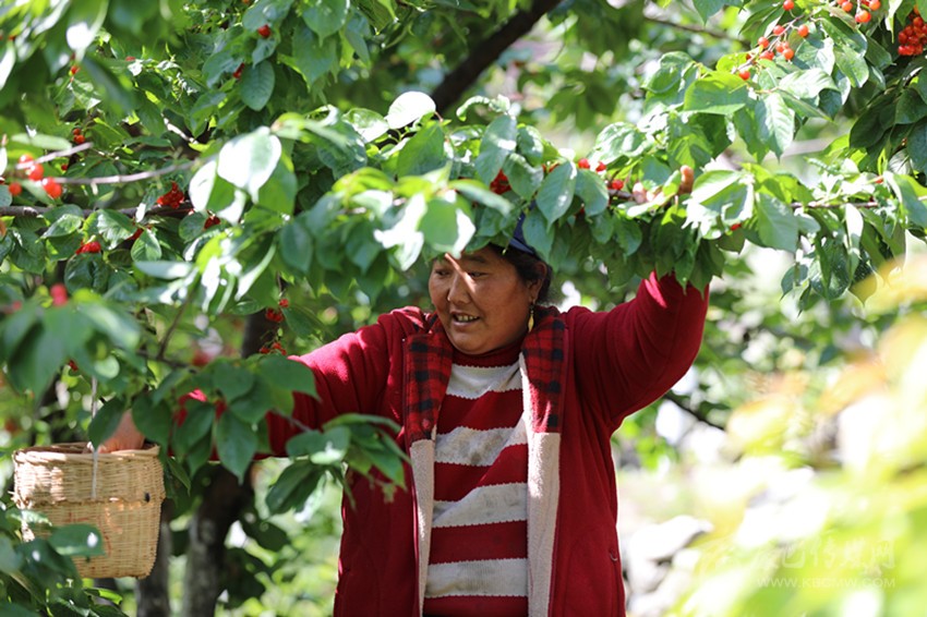 眾所周知,瀘定紅櫻桃早已紅遍四川,瀘定紅色文化更是曉喻九州。近年來(lái),瀘定縣以創(chuàng)建“國(guó)家全域旅游示范區(qū)”“天府旅游名縣”為抓手,從旅游產(chǎn)品打造、旅游服務(wù)保障、旅游形式多元化等方面發(fā)力,大力推動(dòng)“旅游+”和“+旅游”產(chǎn)業(yè)深度融合發(fā)展,推出紅色經(jīng)典瀘定橋、冰川溫泉海螺溝、最大平臺(tái)牛背山、景觀大道G318、最美階梯二郎山、陽(yáng)光田園大渡河、川藏茶馬古驛道“七張名片”,同時(shí)將以櫻桃產(chǎn)業(yè)為主的果蔬產(chǎn)業(yè)同鄉(xiāng)村休閑旅游業(yè)深度整合。特別是自新冠疫情發(fā)生以來(lái),瀘定縣積極思謀、創(chuàng)新探索“旅游+農(nóng)業(yè)”“網(wǎng)絡(luò)+營(yíng)銷”“線上+線下”的農(nóng)旅發(fā)展新模式,打通網(wǎng)絡(luò)電商與農(nóng)村物流渠道,努力保證農(nóng)民增產(chǎn)增收。杵坭村種植大戶劉爽興奮地向記者介紹:“今年收成不錯(cuò),銷售路子也不愁!恩桃兒還沒(méi)熟,就接到一摞訂單。辦了12屆的采摘節(jié),真是把我們?yōu)o定紅櫻桃的名氣打出去了,期期游客爆滿,大家從全省各地過(guò)來(lái)吃恩桃兒,都夸我們紅櫻桃好,村民心頭美滋滋!”