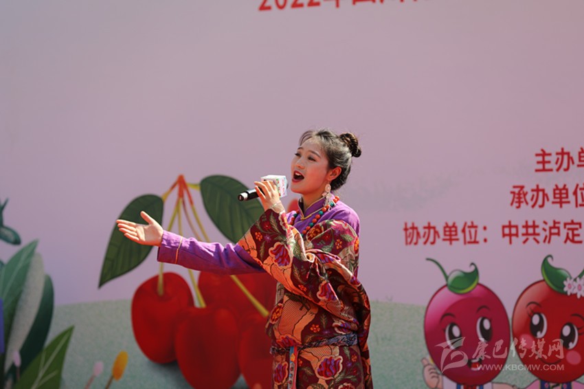 櫻桃誘人、演出精彩、游戲生趣。上午10時(shí)許,在以遠(yuǎn)山、田野、紅櫻桃為背景的舞臺(tái)上,一支女子群舞喚起了全場(chǎng)的“紅色記憶”,也拉開(kāi)了紅櫻桃節(jié)的序幕,瀘定的四月注定是紅色的。隨之,歌曲《櫻桃花飄香的地方》《春風(fēng)十里 》和舞蹈《百年壯舉展輝煌》首首歌舞“飛揚(yáng)”大渡河畔,唱出了這片“紅土地”的農(nóng)村新風(fēng)尚、農(nóng)民新面貌,舞出了“新農(nóng)村”的現(xiàn)代化建設(shè)新成果、鄉(xiāng)村振興的新篇章,更演繹出紅城兒女敢叫日月?lián)Q新天、定讓“老區(qū)”綻新彩的踔厲奮發(fā)。