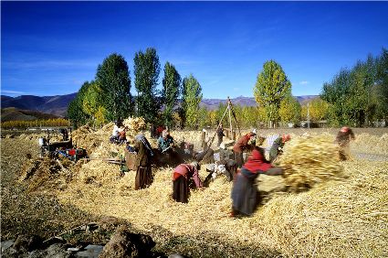 “康北糧倉”甘孜縣青稞香秋收忙