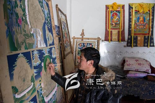 爐霍是一代唐卡宗師郎卡杰(約公元1610年生)的故鄉(xiāng),歷代傳承弟子風(fēng)格一脈相承,形成郎卡杰唐卡繪畫流派。該派作品的層次感,從花草樹木的枝葉前后層次,到山水房屋、飛禽走獸、人物器具的遠(yuǎn)近距離和明暗關(guān)系,都彰顯了三維立體的空間效果,繪畫中除了對主圖的精湛表現(xiàn),對局部結(jié)構(gòu)的精確處理和頻現(xiàn)微型畫像的神奇描繪,更是完美結(jié)合。郎卡杰本人作品《佛本身轉(zhuǎn)》、《二圣六莊嚴(yán)》等作品堪稱一絕。2008年,文化部授予爐霍“中國民間藝術(shù)之鄉(xiāng)——唐卡之鄉(xiāng)”。