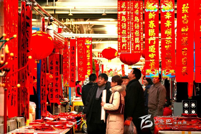 春聯(lián)亦名“門對(duì)”、“春帖”,是對(duì)聯(lián)的一種,因在春節(jié)時(shí)張貼,故名。春聯(lián)的一個(gè)源頭是桃符。最初人們以桃木刻人形掛在門旁以避邪,后來(lái)畫門神像于桃木上,再簡(jiǎn)化為在桃木板上題寫門神名字。春聯(lián)的另一來(lái)源是春貼。古人在立春日多貼“宜春”二字,后漸發(fā)展為春聯(lián)。春聯(lián)真正普及始于明代,與朱元璋的提倡有關(guān)。據(jù)清人陳尚古的《簪云樓雜說(shuō)》中記載,有一年朱元璋準(zhǔn)備過(guò)年時(shí),下令每家門上都要貼一幅春聯(lián),以示慶賀。原來(lái)春聯(lián)題寫在桃木板上,后來(lái)改寫在紙上。桃木的顏色是紅的,紅色有吉祥,避邪的意思,因此春聯(lián)大都用紅紙書寫。但廟宇用黃紙,守制(服孝未滿)用白、綠、黃三色,第一年用白紙,第二年綠紙,第三年黃紙,第四年喪服滿才恢復(fù)用紅紙。因滿族尚白,清宮廷春聯(lián)用白紙,藍(lán)邊包于外,紅條鑲于內(nèi)。