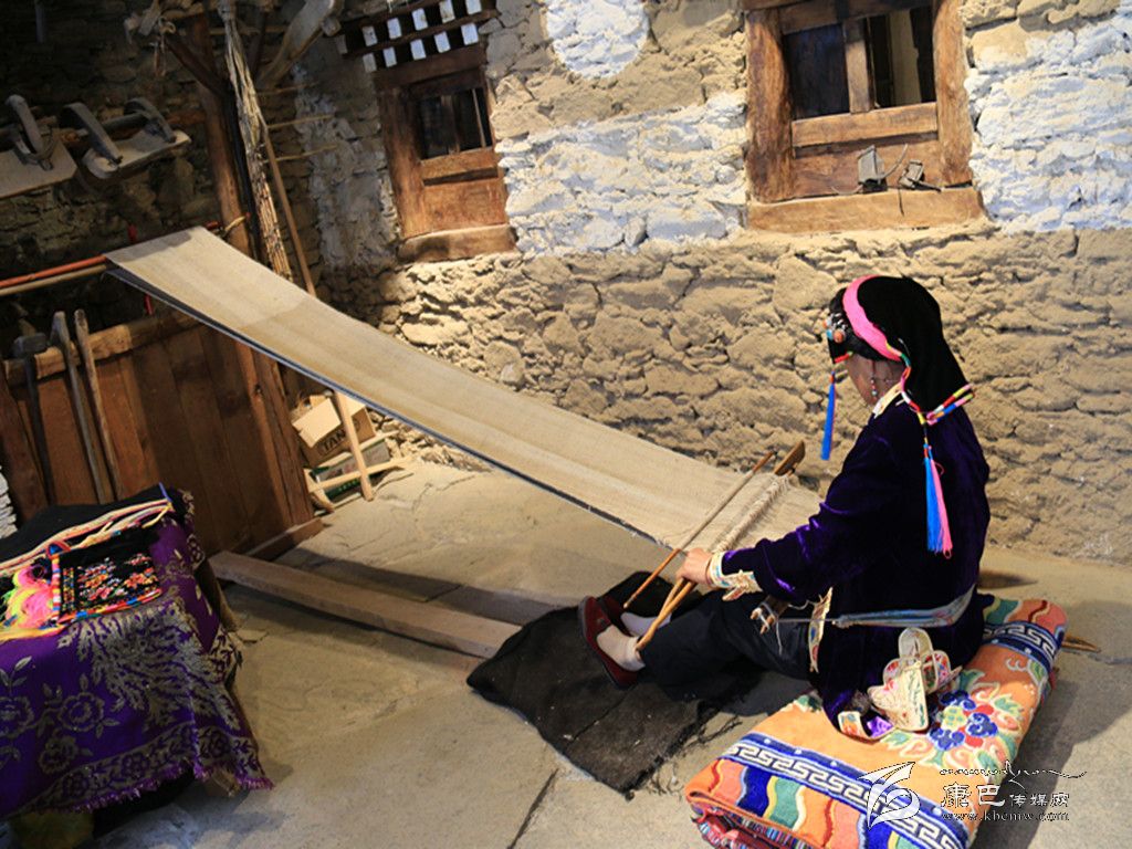 穿過古樸的大門,步入館中,映入眼簾的是古老的民間紡織技藝。一位藏族老阿媽端坐在古董般的織布機(jī)前,聚精會神地編織布匹,見到游人微笑回應(yīng),并未停下她手上的工作。年逾60的擁天秀,從十幾歲便學(xué)習(xí)織布,此間從未間斷。隨著紡織機(jī)逐漸被淘汰,擁天秀已成為傳承這門古老技藝的“活化石”。非遺展示館開館時,擁天秀主動表示,愿在此地免費(fèi)為游客展示丹巴紡織技藝。 “我喜歡丹巴刺繡和紡織工藝,平時在家里也會做,現(xiàn)在眼睛不很好,所以刺繡沒有辦法做了。游客們很喜歡在這里看我織布,他們有什么問題,我都會給他們講解。”古老的嘉絨紡織技術(shù),通過擁天秀的雙手,漸漸被人們熟知,無數(shù)張游人與她的合影也被傳至網(wǎng)絡(luò)。經(jīng)她現(xiàn)場紡織,價值600元一匹的純手工布銷量也節(jié)節(jié)攀升,擁天秀研習(xí)多年的手工活在展示館中終于有了“用武之地”。