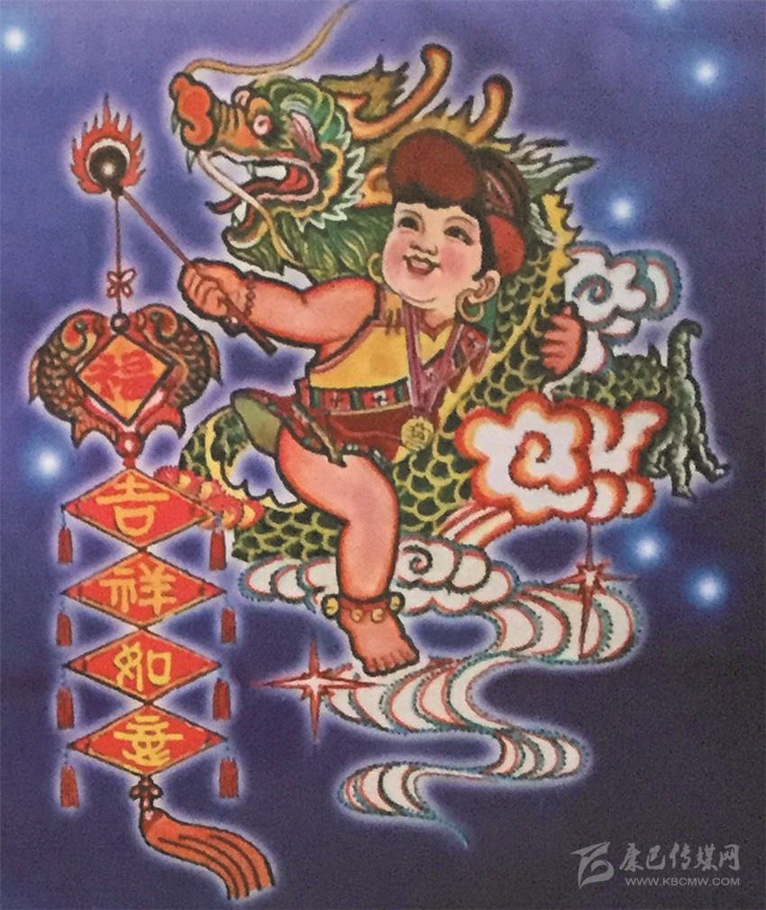 在內(nèi)容層面,年畫的視覺意義、被觀看者的意義得到追問和揭示。兒童心理學研究證明,兒童在三、四歲時知覺就已經(jīng)相當成熟了,并且掌握了許多成人的知覺識別。他們能夠區(qū)別許多事物和人的面部表情,也能認識某些抽象幾何形式,對某些微妙的細節(jié)甚至有很高感受性。在一個家庭之內(nèi),年畫的觀看與意義釋讀是必然相關(guān)的事情。兒童成長期和語言習得期還有一個特別的“問詢”和“聽故事”時期。就是說兒童時期是一個描繪白紙的時期,萬事萬物都對他是新鮮、好奇、未知的,所以會有“十萬個為什么”;同時也特別喜好在提問之時聆聽回答,聆聽故事。居家生活近在眼前的年畫無疑是兒童詢問、提問、追問的重要對象,而對年畫內(nèi)容、寓意、象征做出解答、解讀、解釋,則是家中長者的義務。所以就流傳下來許許多多的年畫傳說和故事。而年畫的每一種畫幅、形象、人物、動物、花鳥、魚蟲、神靈等都在描繪、講述、故事,也有種種象征寓意,比喻、諧音、雙關(guān)等文化轉(zhuǎn)喻和修辭,是一個更深層的文化符號世界。