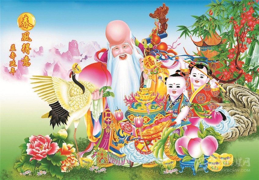 年畫對人作為一個特殊物種的感性、感覺、感官的視覺包圍,是建立在民居、家庭、居室對身體的包圍(物理空間)基礎之上的,也是建立在年畫的張貼對人的精神恐懼的安慰和安撫并使之安寧的精神包圍(文化空間)之中的。這雙重的視覺包圍還包括了一個從物質(zhì)和精神的家園,到對人的出身、成長、成年、老齡、死亡的人生過程的全程包圍和看見。