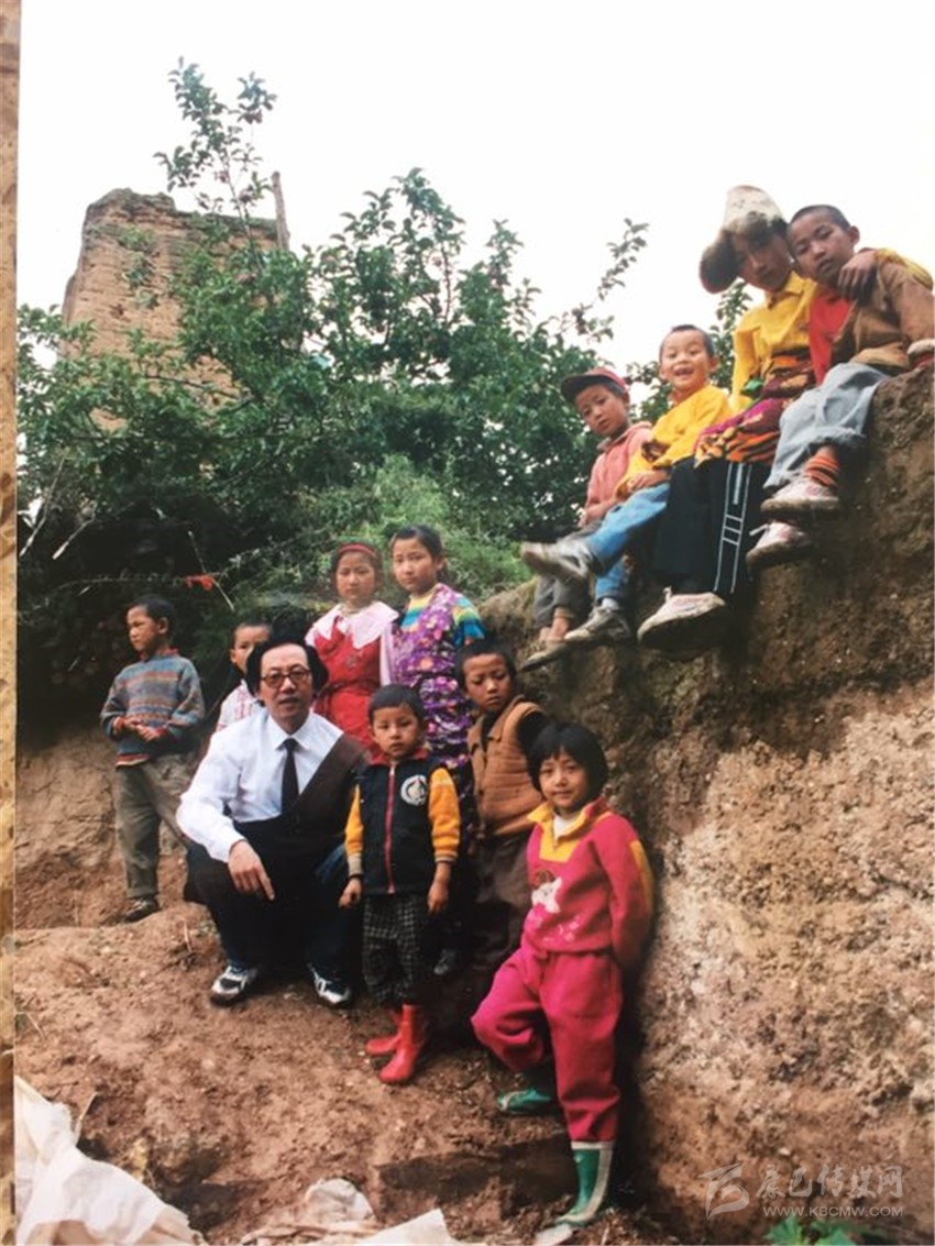 在基層采風(fēng)時(shí),阿金與兒童在一起。