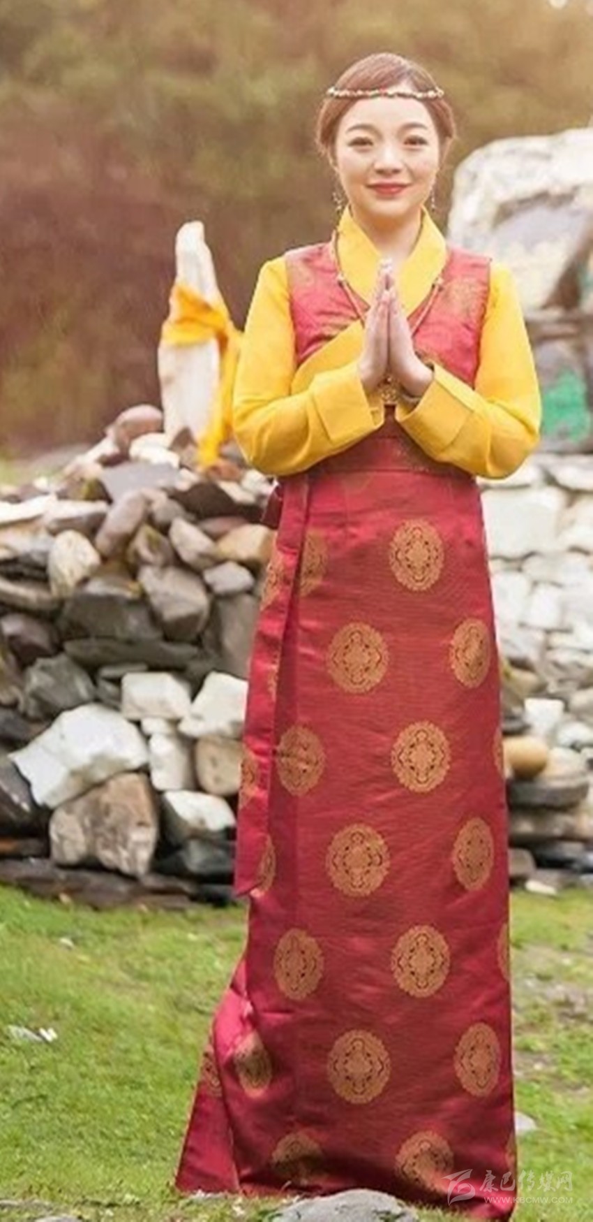 無(wú)論是經(jīng)典的黑色立領(lǐng)上衣還是金邊裝飾的翻領(lǐng)上衣,都十分時(shí)髦美觀,配上做工精細(xì),由毛呢、氆氌等材料制成的充滿民族特色花紋的下衣,加上華麗珠寶鑲嵌的腰帶是對(duì)傳統(tǒng)藏裝的傳承與發(fā)展。