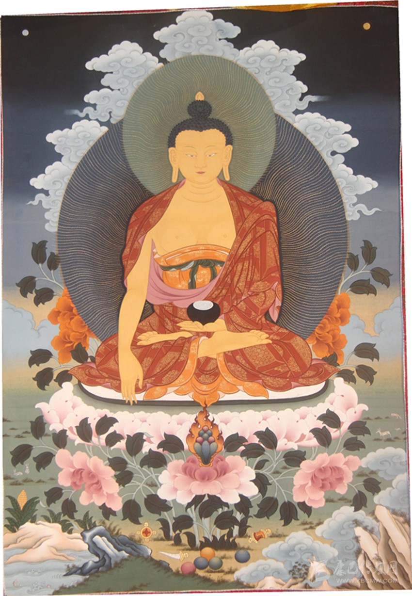 爐霍是一代唐卡宗師郎卡杰(約公元1610年生)的故鄉(xiāng),歷代傳承弟子風(fēng)格一脈相承,形成郎卡杰唐卡繪畫流派。該派作品的層次感,從花草樹木的枝葉前后層次,到山水房屋、飛禽走獸、人物器具的遠(yuǎn)近距離和明暗關(guān)系,都彰顯了三維立體的空間效果,繪畫中除了對(duì)主圖的精湛表現(xiàn),對(duì)局部結(jié)構(gòu)的精確處理和頻現(xiàn)微型畫像的神奇描繪,更是完美結(jié)合。