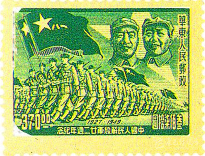 1949年8月華東郵政管理總局發(fā)行的《中國(guó)人民解放軍建軍22周年》紀(jì)念郵票。