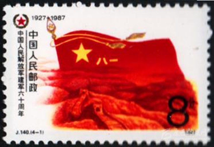 1977年8月1日原郵電部發(fā)行的《中國(guó)人民解放軍建軍50周年》紀(jì)念郵票,其中第4枚“雄師過(guò)大江”,圖案中一名沖在渡江隊(duì)伍前面的戰(zhàn)士高舉一面“八一”軍旗。1987年8月1日原郵電部發(fā)行的《中國(guó)人民解放軍建軍60周年》紀(jì)念郵票一套4枚。其中第1枚“軍魂”,郵票上一面鮮紅的“八一”軍旗迎風(fēng)飄揚(yáng),旗下是蜿蜒的萬(wàn)里長(zhǎng)城,代表了中國(guó)人民解放軍是保衛(wèi)祖國(guó)和人民的“鋼鐵長(zhǎng)城”。1995年8月1日,原郵電部試發(fā)行一套“義務(wù)兵專(zhuān)用”郵票一套1枚,票名為“神圣的使命”,圖案以紅光四射的“八一”軍旗為背景,以現(xiàn)代化的飛機(jī)、坦克、火箭和象征和平的白鴿為襯托,畫(huà)面是威武的陸??杖?,顯示我軍鋼鐵長(zhǎng)城般攻無(wú)不克、戰(zhàn)無(wú)不勝的精神風(fēng)貌。